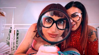 Gloryhole Blowjob: Nerdy Brunette with Glasses and Tattoos Deep Throats and Swallows Cum